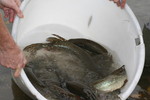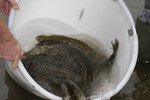 Zum Glück haben wir viele überhängende Büsche und umgestürzte im Wasser liegende bzw. versunkene Bäume, so dass es an geeigneten Stellen nicht mangelt. Die Fische waren quicklebendig und gingen sofort auf Tauchstation. Es fand sich nicht ein einziger verletzter oder gar toter Fisch im gesamten Besatz.
